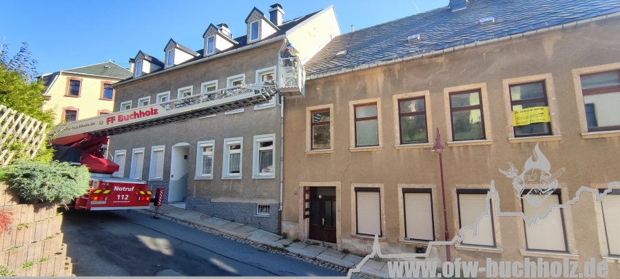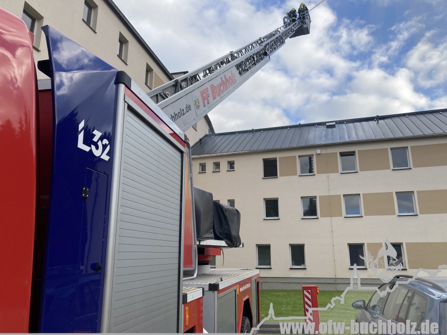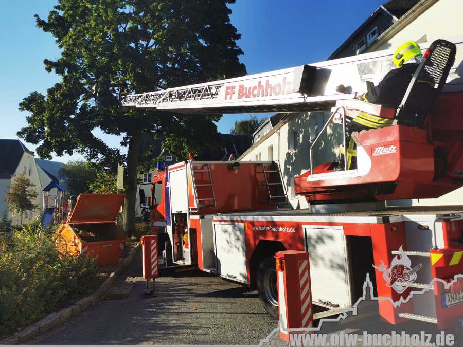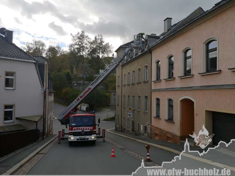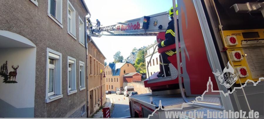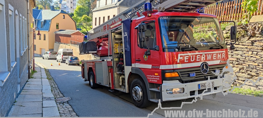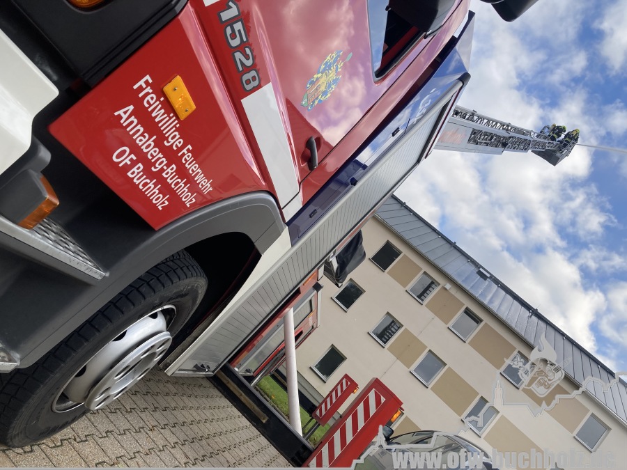Am Montagnachmittag wurden wir zusammen mit der Feuerwehr Annaberg auf die Parkstraße zu einem Schornsteinbrand alarmiert. Im Gebäude überprüfte ein Trupp den Schornstein mittels Wärmebildkamera, während zeitgleich ein weiterer Trupp den Schornstein auf dem Dach über die Drehleiter kontrollierte. Da weder erhöhte Temperatur noch Glut festgestellt wurde, waren keine weiteren Maßnahmen nötig und wir konnten den Einsatz beenden.