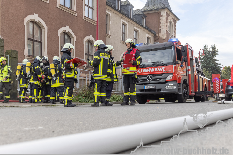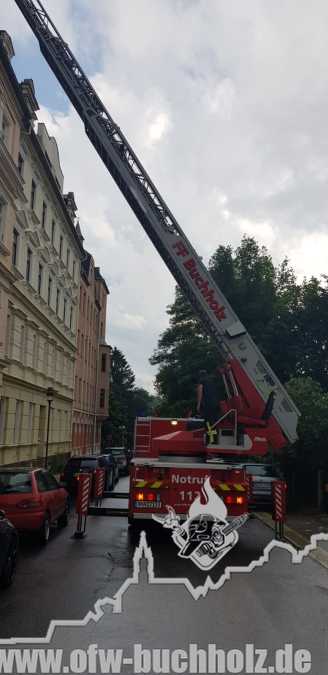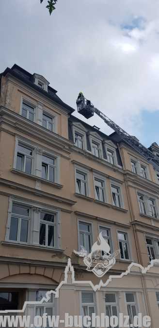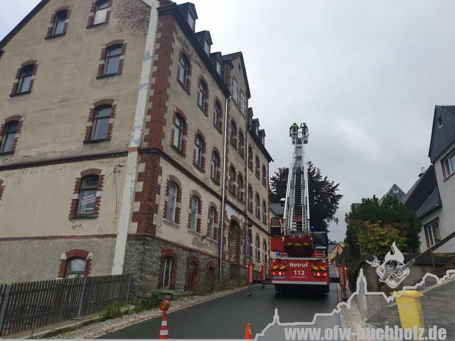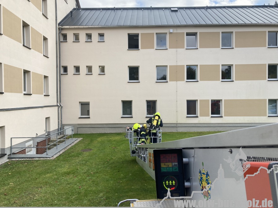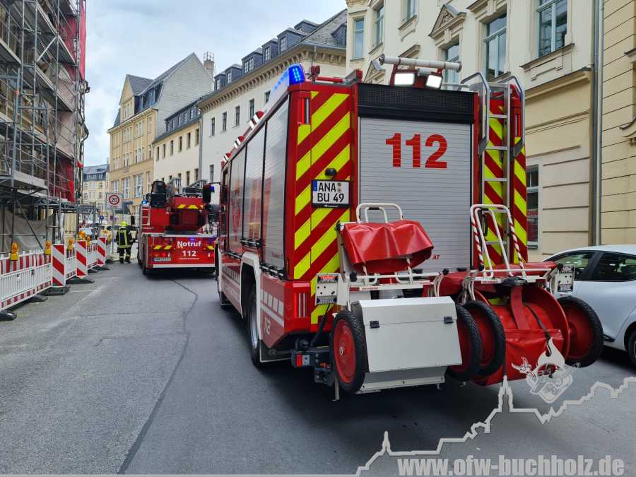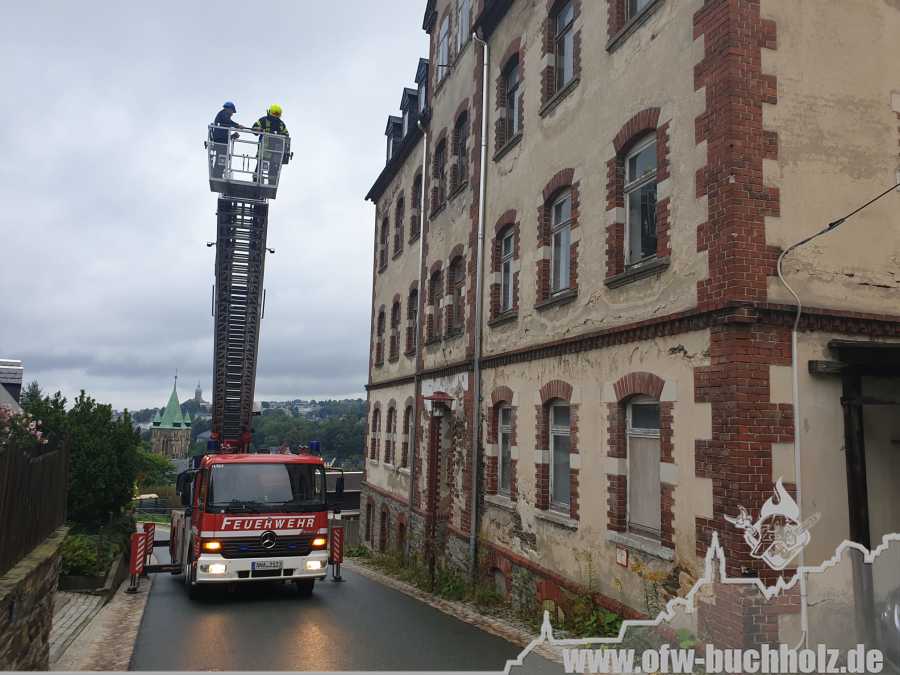 Am Montagnachmittag wurden wir zusammen mit der Feuerwehr Annaberg auf die Parkstraße zu einem Schornsteinbrand alarmiert. Im Gebäude überprüfte ein Trupp den Schornstein mittels Wärmebildkamera, während zeitgleich ein weiterer Trupp den Schornstein auf dem Dach über die Drehleiter kontrollierte. Da weder erhöhte Temperatur noch Glut festgestellt wurde, waren keine weiteren Maßnahmen nötig und wir konnten den Einsatz beenden.