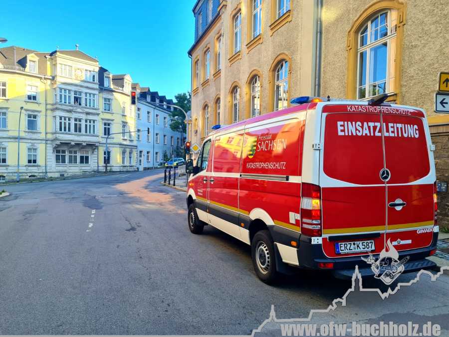 Am frühen Montagvormittag wurden wir zum Berufsschulzentrum auf die Bärensteiner Straße nach Annaberg-Buchholz alarmiert. Wie der Hausmeister Vorort schilderte, würde es aus einem Abfluss und im Kellergeschoss des Berufsschulzentrum nach Benzin riechen. Wir kontrollierten den Bereich mit einem Mehrfachmessgerät und schlossen mineralische Dämpfe aus. Einen beißenden, stinkenden Geruch konnte man aber dennoch durchweg wahrnehmen. Zusammen mit dem Abwasserzweckverband öffneten wir in der Umgebung weitere Kanaldeckel um die Flüssigkeit ausfindig zu machen. Insgesamt konnten wir keine Flüssigkeit in der Kanalisation ausfindig machen. Wir übergaben die Einsatzstelle dem AZV und Umweltamt. Der AZV wird nachfolgend das Kanalisation gründlich spülen, sodass die Geruchsbelästigung verschwinden sollte. Die Räume im Kellerbereich wurden vom Hausmeister gesperrt und werden durchweg gelüftet.