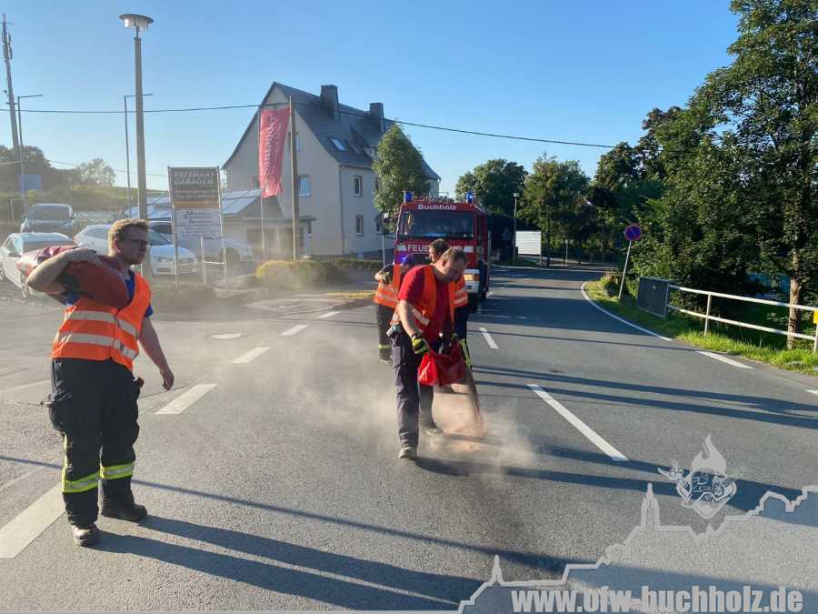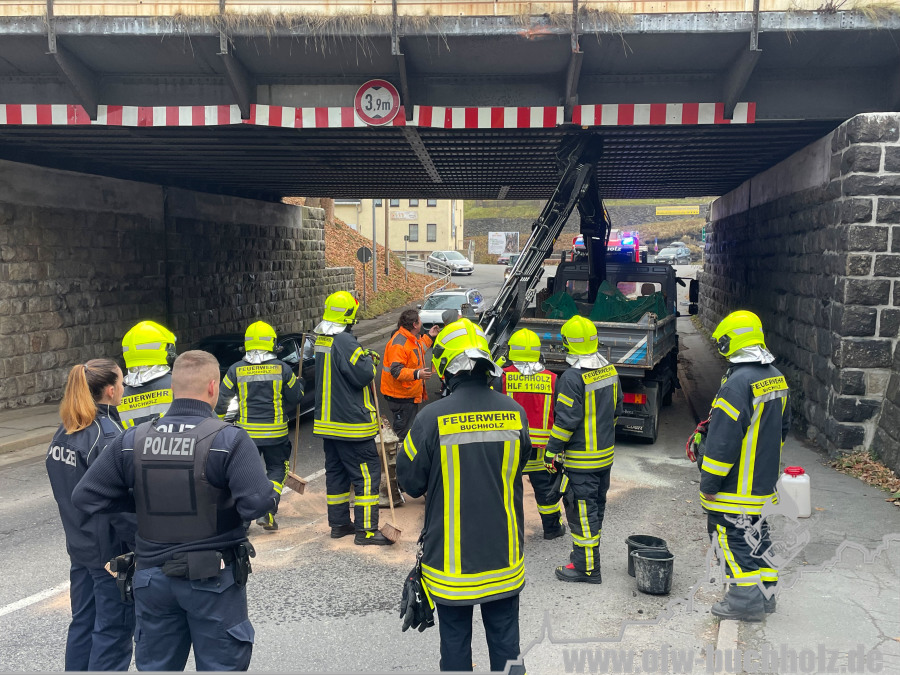 An einem Multi Car riss am Freitagvormittag eine Dieseldruckleitung und verursachte eine mehrere kilometerlange Dieselspur im Buchholzer Stadtgebiet. Das HLF und LF lösten die Dieselspur mit Bioversal auf. Der ELW nahm die Daten des Verursachers auf. Eine Ölbeseitigungsfirma reinigte zudem die Bundesstraße. Nach etwas über einer Stunde war der Einsatz für uns beendet.