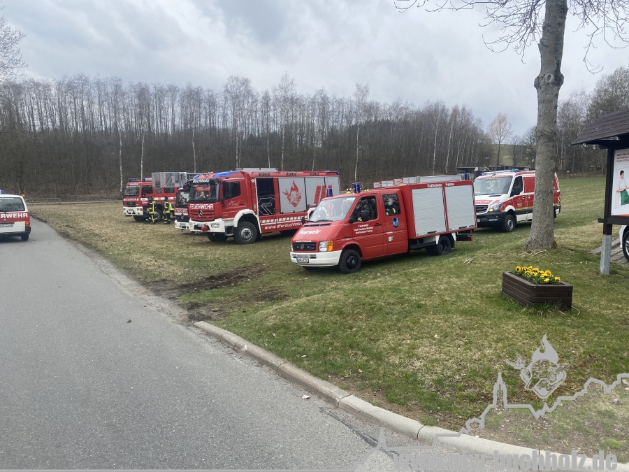 Zusammen mit den o.g. Kräften wurden wir mit der Drehleiter und unserem HLF nach Geyer zu einem beginnenden Waldbrand alarmiert. Angekommen am Einsatzort brannte jedoch nur ein 2 Meter x 2 Meter großer Komposthaufen. Wir rückten somit wieder ein, da unsere Kräfte hier nicht benötigt wurden.